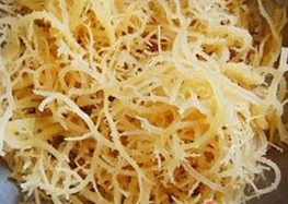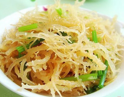 石花菜食用前可在開(kāi)水中焯過(guò),但不可久煮,否則石花菜會(huì)溶化掉,所以先用40~50℃的溫?zé)崴?小時(shí),涼拌時(shí)可適當(dāng)加些姜末或姜汁,以緩解其寒性。 原料: 石花菜、芹菜少許(黃瓜絲也可以)、蒜末、姜末、醋、生抽、少許鹽、雞精、香油。 做法: 1、石花菜用40度左右的溫水泡2個(gè)小時(shí),洗凈瀝干放入一大碗中。 2、芹菜焯水瀝干水分,放入石花菜的碗中。 3、蒜末,姜末,一大匙醋,一大匙生抽,鹽,雞精,香油兌成料汁。 4、把料汁倒入石花菜和芹菜中,拌均勻即可。
