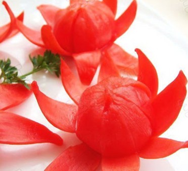 2、用刀把櫻桃小蘿卜切成米字形,底部不能切斷哦。