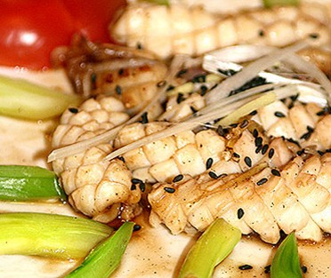 1、這是道微波菜,首先,把魷魚切花刀,這種應(yīng)該叫麥穗刀,還一種十字的叫做荔枝花刀,撕掉身上的那層黑皮后,在魷魚里面開始切,切好后,到沸水中焯一下,打卷后取處。