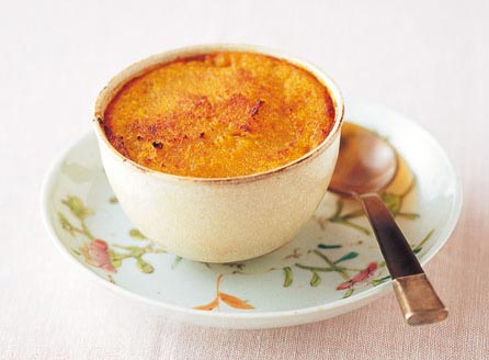 南瓜是一種營養(yǎng)又健康的蔬菜,再加上配方牛奶及蛋之后,蛋白質(zhì)的營養(yǎng)價值更豐富了。經(jīng)由電鍋稍蒸之后,漂亮金黃色表面的南瓜布丁,柔軟滑順的口感及蔬菜的香味,自然微甜、清爽不油膩,真可以說是一道絕佳的寶寶飯后健康小點心。 適合10個月以上 材料:南瓜泥1大匙、蛋1/2個、配方奶水1/2杯(以正常沖泡比例沖泡) 做法: 1.將配方奶與蛋液調(diào)勻后加入南瓜泥。 2.再將調(diào)勻的溶液倒入小碗中。 3.入電鍋蒸約5分鐘即可。 熱量:146.6(大卡) ;蛋白質(zhì)6.1(克); 脂肪8.2(克) 醣類12.1(克) |