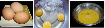 2、雞蛋3個打發(fā),加入植物油、牛奶、白糖,攪拌均勻,