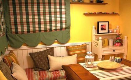 亮點二:餐廳和廚房是連通的,因為面積小,所以做一個卡座沙發(fā),兩面的餐椅都省了,而且坐著還很舒服。