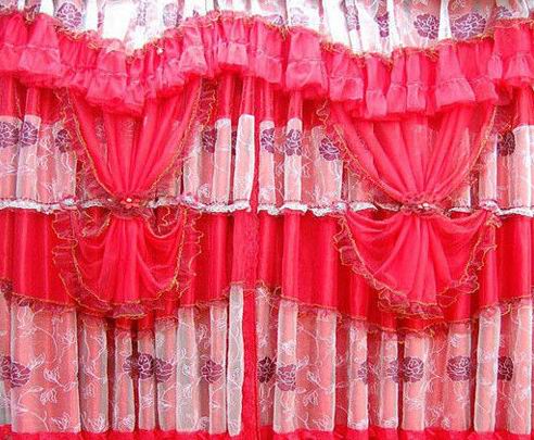 蕾絲也分高中低檔,這款中檔窗簾價格便宜,雖然蕾絲沒那么軟,但是掛在那里也非常漂亮,婚房用足矣。