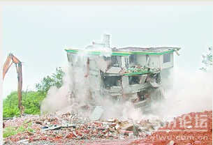 “此次拆遷房屋位于義烏市疏港高速公路蘇溪互通A匝道橋,占地總面積400余平方米,建筑面積1800平方米。由于該房子遲遲未能拆除,嚴(yán)重阻礙了互通橋梁的施工!痹摴こ添(xiàng)目辦負(fù)責(zé)人介紹,經(jīng)過(guò)蘇溪鎮(zhèn)政府、石塘村兩委加班加點(diǎn)深入農(nóng)戶做思想工作,終于與房主達(dá)成協(xié)議,同意拆除。