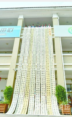 據(jù)了解,“浙江省書法教育實(shí)驗(yàn)基地”田心小學(xué)以日常書法特色學(xué)科教學(xué)打造學(xué)校文化。學(xué)生們通過書法作品,集體呼吁更多人關(guān)注傳統(tǒng)文化。