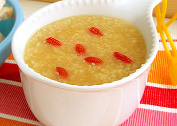 雞蛋花粥具有清熱利濕、解毒潤(rùn)燥的作用。此粥是我國(guó)民間藥食兩用的保健食物,尤其小兒更為適宜,并對(duì)濕熱引起的下痢赤白、痢疾厚重及泄瀉等病癥有較好的療效。 主料:梗米100克,雞蛋1個(gè),鹽適量。 做法: 1、將梗米淘洗干凈,雞蛋磕入碗內(nèi)。 2、將鍋置火上,放適量清水燒開(kāi),下梗米熬煮,粥將好時(shí),把蛋液打散后均勻地倒入粥內(nèi),再稍熬片刻,加少許鹽,攪勻即成。 |