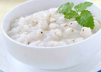薏仁粥具有健脾除痹、利水滲濕的功效。適用于食欲不振、腹瀉、水腫及皮膚扁平疣等病癥。 主料:薏米(50克) 粳米(100克) 調(diào)料:冰糖(10克) 做法: 1、將薏仁、粳米淘洗干凈; 2、薏仁用冷水浸泡3小時(shí),粳米浸泡半小時(shí); 3、將薏仁、粳米分別撈出,瀝干水分; 4、鍋中加入約1500毫升冷水,將薏仁、粳米依次放入,先用旺火燒沸; 5、然后轉(zhuǎn)小火熬煮45分鐘; 6、見(jiàn)米粒爛熟時(shí),加入冰糖拌勻,再稍煮片刻,即可盛起食用。