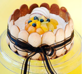 原料: 清蛋糕1個(gè)(9寸)、手指餅干2包(時(shí)間充裕可以自己做,我來不及買了現(xiàn)成的)、香草布丁粉Vanilla Instant Pudding Mix 2包(Dr.Oetker牌的,北美很常見)、牛奶、打好的奶油Whipped topping、蔓越莓醬、各種水果適量。 做法: 1、先做好一個(gè)清蛋糕。做法點(diǎn)這里。完全冷卻后切成兩片; 2、在下層的蛋糕上抹一層蔓越莓醬。做法點(diǎn)這里; 3、用springform baking pan,底部鋪上蛋糕層,四周圍上一圈手指餅干; 4、布丁粉加牛奶,按包裝上的說明,中火燒開,不停攪拌,直到變濃綢; 5、讓布丁稍稍冷卻,中間用勺子攪拌幾次,然后倒進(jìn)烤盤里; 6、蓋上另一層蛋糕。稍稍壓平; 7、抹上奶油。放進(jìn)冰箱里冷藏一晚上; 8、放上水果裝飾,最后撒上一點(diǎn)糖粉。脫模,扎上絲帶。完成。 因?yàn)闀r(shí)間關(guān)系,很多材料都用的現(xiàn)成的,其實(shí)自己做也是可以的,比如手指餅干,比如布丁,比如新鮮奶油,另外用的水果是買來袋裝的冰凍水果,結(jié)果解凍后時(shí)間一長就顯出頹勢,非常不給面子,以后還是要用新鮮水果。 |