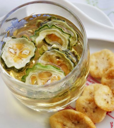 另外,因?yàn)榭喙现泻刑擒,有種特殊的苦味,能促進(jìn)食欲,幫助消化;有清熱解毒、清涼降火的作用?喔善莶瑁兜烙行└煽,稍許加些蜂蜜,立刻會(huì)變得柔潤(rùn)許多,入口清甜,生津潤(rùn)燥。每天飯后來(lái)一杯蜂蜜苦瓜茶,可以有效清理腸胃,達(dá)到纖體瘦身的效果。
