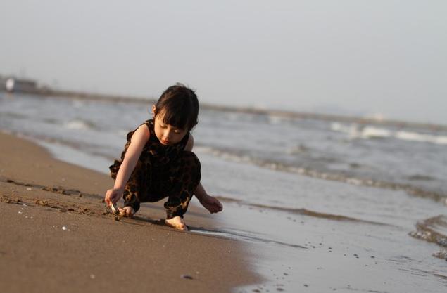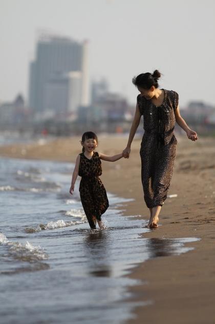 : 在大海邊和媽媽一起奔跑、追逐,享受生活的閑適美好!