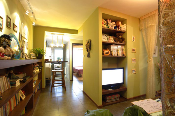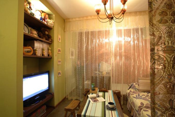 考慮到業(yè)主夫婦都比較年輕、沒有孩子,雙方的老人也只是偶爾到訪,設(shè)計師將原有的次臥與小門廳打通,并將客廳、書房和客臥的功能結(jié)合在一起。這樣做使空間更加合理且具有更好的靈活性,并增強了小居室的通透感覺。 中式元素和一些田園風(fēng)格的家居用品,是業(yè)主夫婦比較衷愛的。設(shè)計師結(jié)合這兩個風(fēng)格的基本符號,在小空間里巧妙安排,既讓這兩種風(fēng)格巧妙的融合在一起,形成一種新的裝飾效果,又盡量不占有有限的使用面積,把更多的空間留給使用者。 |