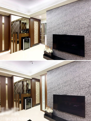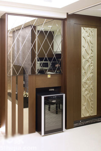 火樹銀花大理石特殊的紋理,連結(jié)至阻隔廚房油煙的玫瑰圖騰拉門,客廳一面電視墻的豐富安排,凝聚高雅細(xì)膩的主題。