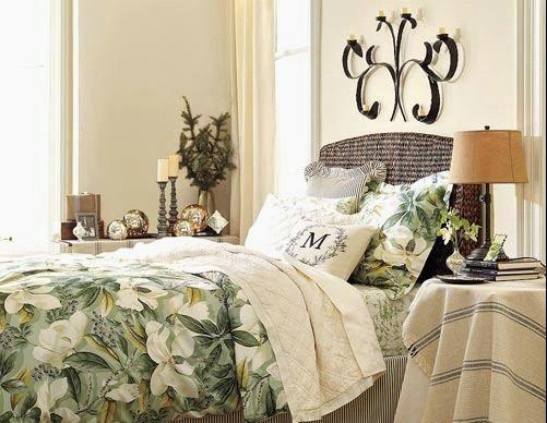 這一室玉蘭飄香的場景,讓人宛如置身花海,徜徉在白色與綠色交織出的清新畫卷之中。原本用水彩畫描繪的花卉被印在了床品上,將這一幅春天般絢爛的畫卷留著我們的臥室中。