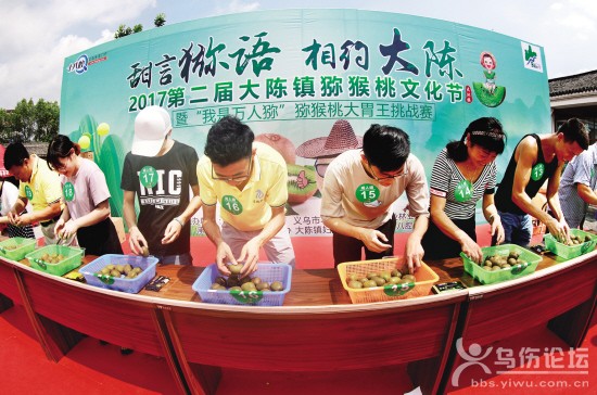 9月10日,義烏市大陳鎮(zhèn)舉行第二屆獼猴桃文化節(jié),迎來了獼猴桃采摘游的熱潮。 作為省現代農業(yè)示范園區(qū)的大陳鎮(zhèn)獼猴桃產業(yè)園,集生產示范、觀光旅游及經營于一體,促使現代林業(yè)與休閑旅游業(yè)有機結合,走出了一條觀光林業(yè)的發(fā)展新路。今年以來,大陳鎮(zhèn)接待游客突破100萬人次,旅游總收入達到5000萬元。