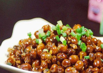用料:黃豆二兩、獨(dú)蒜半個(gè)、老姜一小小塊、香蔥一棵、白糖一小匙、醬油四大匙、醋三大匙、油辣椒一大匙(可依個(gè)人喜好增減)、花椒粉半咖啡匙、香油一咖啡匙、味精適量。 做法: 1、將姜蒜搗碎后加一湯勺純凈水成姜蒜水;香蔥切碎。 2、將除黃豆外的所有用料同放一個(gè)碗里調(diào)成味料。 3、黃豆淘洗凈后瀝干水分。 4、鍋置火上,下黃豆用小火翻炒至熟。 5、將炒熟的黃豆盛入味料中。 6、還得在(口茲口茲)中用蓋子蓋在裝黃豆的碗上,讓黃豆?fàn)F二十分鐘左右。 7、揭蓋,上桌,開(kāi)吃。 |