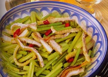 原料:嫩芹菜一斤茄汁二兩精鹽二錢(qián)食油一兩白醋一錢(qián) 做法: 1、選鮮嫩芹菜,摘去葉、根洗凈,用刀把梗部順直剖開(kāi),投入開(kāi)水鍋中,見(jiàn)水再開(kāi)時(shí)撈出,瀝水后切成一寸長(zhǎng)的段,加入精鹽、味精放盤(pán)內(nèi)。 2、鍋放爐火上,放入食油燒熱,加入茄汁、白糖、醋和水適量,燒開(kāi)后澆在芹菜上即成。