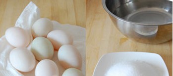 原料: 新鮮生鴨蛋8個(gè)、冷水780克、高度白酒20克、鹽200克(液體量與鹽的比例約4:1,鹽水量務(wù)必保證要淹過所有鴨蛋)、干凈玻璃瓶1個(gè)。 做法: 1、生鴨蛋用清水洗凈,用紙巾擦干鴨蛋表面的水分,自然風(fēng)干; 2、冷水中加入鹽煮沸放涼; 3、把白酒加入到放涼的鹽水中攪勻; 4、鴨蛋放入干凈玻璃瓶中然后倒入鹽水,蓋緊瓶口,放置到陰涼避光的地方腌制45天左右。泡好的咸蛋取出食用前,煮8-10分鐘即可。
