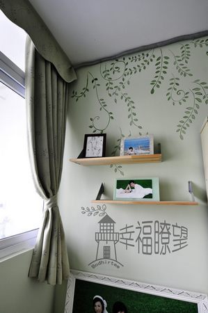 書房,簡(jiǎn)單的家具!綠色墻面,設(shè)計(jì)師局部手繪!以后買個(gè)沙發(fā)床可以住住人