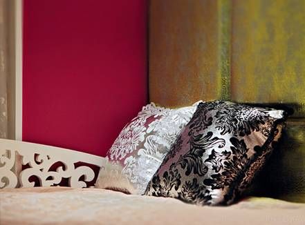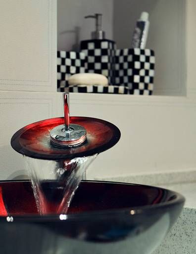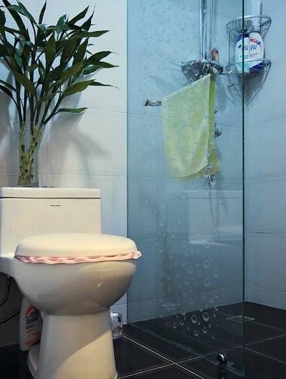 洗手間的洗手盆的顏色與客廳吊燈的顏色相呼應(yīng)。