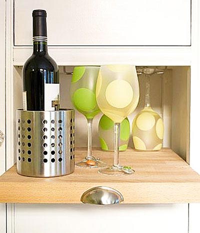 開放式存儲空間里,若需放置一些不規(guī)則造型的酒杯等,建議可以將其懸置起來。你看這些餐具獨(dú)特的外形設(shè)計,明快的色彩,在履行其實(shí)際功能之外,還是你餐桌、廚房上一道亮麗的風(fēng)景。