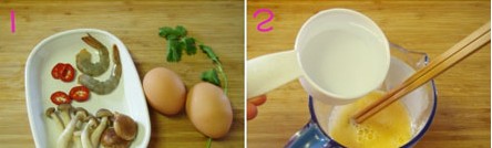 原料:鮮蝦、蘑菇、紅甜椒圈、雞蛋、鹽、香油、橄欖油、醬油。 做法: 1、蝦去皮去蝦線,和其他配料備用; 2、雞蛋充分打散,按照水和蛋的比例為1:1的方式,逐步加入冷水; 3、加入適量鹽調(diào)味; 4、用橄欖油刷下蒸盅的內(nèi)壁; 5、用過濾網(wǎng)慮去蛋泡; 6、保鮮紙密封,水開后,大火蒸8-10分鐘左右,蛋液稍稍凝固,放入蘑菇鮮蝦等配料,再虛蒸幾分鐘; 7、起鍋前,淋少許香油和醬油即可。