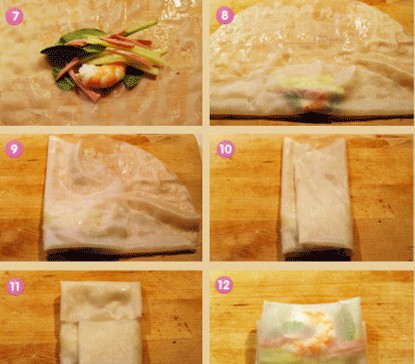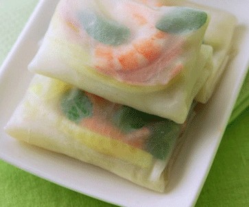 分享我個(gè)人在制作越南春卷上的小體會(huì): 1、越南春卷的春卷皮是用粘米粉+水+食鹽制成的。沒(méi)有泡軟之前比較硬,就像塑料片一樣,泡開(kāi)后會(huì)變得透明且柔軟,所以略泡至軟就可以,不必久泡,泡久了很容易碎。另外,建議用溫水,熱水非常容易給燙碎了; 2、在包的時(shí)候,如果有薄荷葉或者其他葉子蔬菜的,請(qǐng)把葉子的背面沖上,葉子的正面沖下,這樣包出來(lái)的春卷,透過(guò)半透明的米皮,更能清晰的看出隱約的綠色; 3、建議把汆過(guò)水的蝦仁放在貼近米皮的一邊,也就是先放蝦仁后放火腿和黃瓜絲。這樣包完后的春卷更能透出蝦仁的紅色,視覺(jué)上會(huì)更加漂亮; 4、包的時(shí)候請(qǐng)參照步驟圖中包制的順序,這樣包出來(lái)的春卷邊緣更加整齊; 5、如果配料里面夾上黃瓜建議去皮,口感會(huì)更好嗎,味道也會(huì)更加清新; 6、如果沒(méi)有薄荷葉撒上一些薄荷碎也可以哈。 |