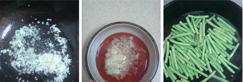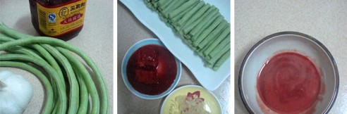 2、3、將豆角洗凈切成整齊的段,蒜用壓蒜器壓成茸,腐乳用勺子壓成泥;