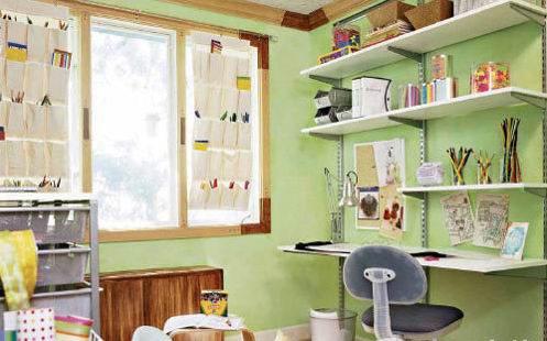 采用懸掛式收納方案省錢又節(jié)約空間,墻面和窗戶都可以作為美術(shù)用品收納的理想空間。你還可以將帆布質(zhì)地的收納架懸掛起來,裝入圖畫紙和著色本。 IDEA2:整墻為媒 靈活取拿 利用整面墻作收納,方便孩子在保持站立姿勢時(shí)方取拿物品?烧{(diào)節(jié)高度的擱架組合方便隨時(shí)調(diào)整收納物品,也給孩子提供空間盡情發(fā)揮他們的創(chuàng)造力。 IDEA3:分配空間 多點(diǎn)利用 墻面空間可以用來懸掛畫筆,寫字臺還可以收納文具,而地面上也可以用雜志架來放置孩子的畫本。 |