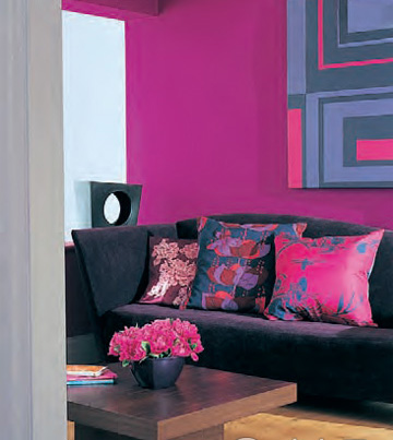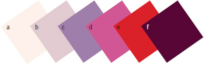 a、彩度很低的淡粉,經(jīng)常用在臥室做底色。 b、接近灰色的淡薰衣草色,可緩沖濃重的紫色、藍(lán)色墻面。 c、低濃度的紫色配上灰、藍(lán),可營(yíng)造寧?kù)o浪漫氛圍。 d、偏向紫色的粉,讓浪漫氛圍帶有理性色彩。 e、高純度的紅,局部恰當(dāng)使用可以讓空間熱情活躍。 f、低沉的紫紅色,可用于打造良好溝通氛圍。 |