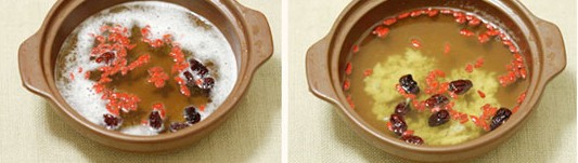 2、將啤酒放入容器里,然后加入枸杞、紅棗,大火煮開;