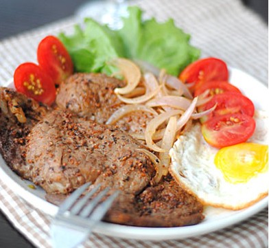 原料:安格斯牛排、cook100酷克壹佰芝加哥精品牛排調(diào)料、黃油、洋蔥、小番茄、生菜、雞蛋。 做法: 1、材料:安格斯牛排、cook100酷克壹佰芝加哥精品牛排調(diào)料、黃油、洋蔥、小番茄、生菜、雞蛋; 2、牛排雙面抹上cook100酷克壹佰芝加哥牛排調(diào)料,腌約15分鐘; 3、平底鍋放入黃油; 4、黃油溶化后放入牛排,大火煎約1、2分鐘即可; 5、牛排盛出后,加入洋蔥利用鍋中余油翻炒熟即可。然后配上蔬菜擺盤,美味就是這么簡單哦。
