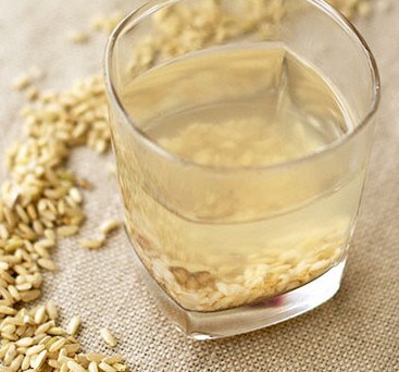 2、另取煮鍋,倒入水,加入炒好的糙米,蓋蓋,煮開,馬上關火。五分鐘后,將糙米過濾留水做茶喝。此為一次茶。