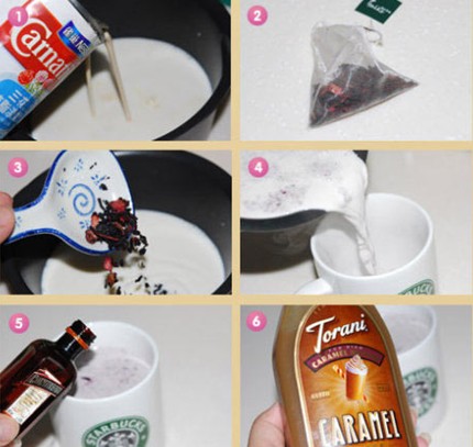 牛奶250ml、三花淡奶50ml、花果茶3克、君度酒15ml、焦糖15ml。