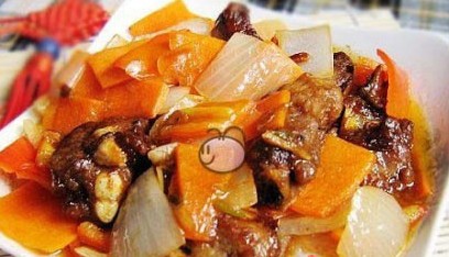 排骨280g,胡蘿卜80g,洋蔥35g,紅尖椒1個(gè)