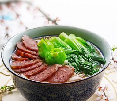 原料:油菜、肉腸、雞蛋、雞清湯、面粉、清水、鹽。
