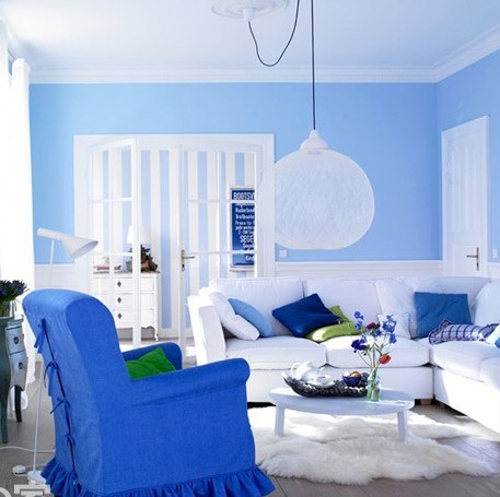 用水藍(lán)色涂裝墻面不僅顯得空間清涼透亮,還隱約有種水一樣的流動感,能夠在春日為客廳營造出一片幽雅寧靜的室內(nèi)空間。