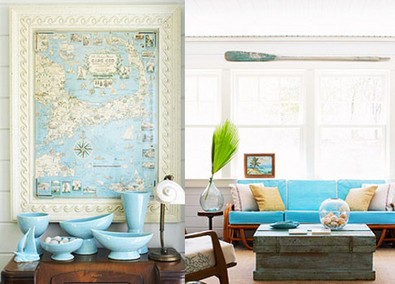 清雅的色彩加上不拘一格的造型,這些水藍色瓷器的點綴增加了空間的秩序感。若和一件古董家具放置在一起,更是散發(fā)出了藝術(shù)的博大氣息。 純藍色布藝的扶手沙發(fā)、淡藍色收納盒以及有些破舊的藍色劃槳裝飾,整個客廳空間處處透露出藍色的輕快明朗,卻因為大面積的光線流入,而又不會顯得過于冷清。 |