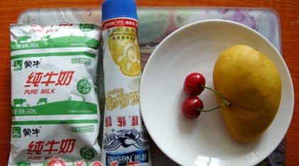 芒果1個(gè)、純牛奶一袋、煉乳40克。