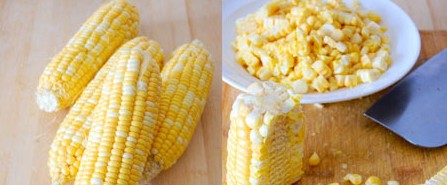 原料: 甜玉米4個、清水1000ml、白糖或蜂蜜、淡奶油適量(這些可以根據(jù)自己口味選擇)。 做法: 1、甜玉米去皮洗凈后,用刀順著玉米棒子,將玉米粒切下來;