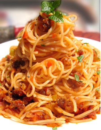 原料:意大利面8小坨、肉餡50克、洋蔥20克、蒜2-3瓣、胡蘿卜10克、西芹10克、西紅柿1個、番茄醬3大勺、意大利綜合香料1/2小勺、黑胡椒碎適量、糖適量、芝士粉適量、橄欖油適量、鹽適量。