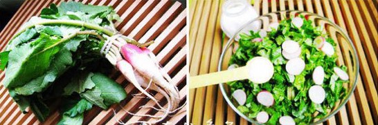 tips: 1、蘿卜纓用鹽殺過(guò)后會(huì)有咸味,所以最后調(diào)味時(shí)鹽的量要少放或者不放; 2、蘿卜纓含水分較大,如果不用鹽殺拌出來(lái)的成品水分較多,影響口感。 |