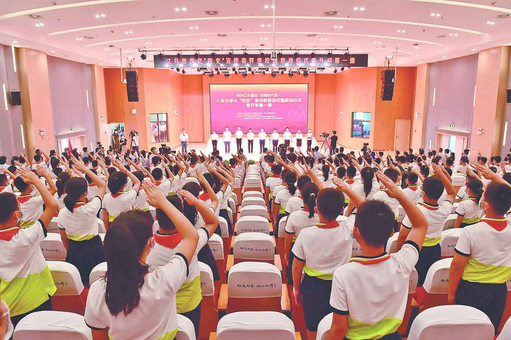 “唧嘭、唧嘭、唧唧嘭——”在香山小學主會場,由畈田朱小學學生表演的道情《共產(chǎn)黨宣言》拉開了全市深化“四史”宣傳教育進校園啟動儀式暨開學第一課活動的序幕。接著上溪一小樓晗韜老師講授的微課《一條路》、香山小學的小組唱《春天的故事》、大學生代表樓鈞杰講授的微課《守護心中的界碑》、繡湖中學的詩朗誦《青春中國》等節(jié)目精彩亮相,將活動推向了高潮。 “1848年2月,《共產(chǎn)黨宣言》在倫敦問世……”在望道中學分會場,思政課老師陳文強以《真理之光,穿透時光之墻》為題,向同學講授了黨史知識,謳歌黨的光輝歷程,讓紅色教育沁潤孩子心靈。課后,不少同學表示深受觸動,大家積極交流,分享自己的收獲和見解。 “今天,我學到了很多黨史知識,加深了對黨的認識,更知道當今的幸福生活來之不易。今后,我要更加努力學習,報效祖國!痹撔902班的姜俊佑激動地說。 在各校的分會場,由思政課老師向同學們講授了黨史、新中國史、改革開放史、社會主義發(fā)展史,將“四史”故事娓娓道來,讓學生們在學“四史”、講“四史”中厚植愛黨愛國情懷、堅定理想信念。 傳承紅色基因,培育時代新人。為推動“四史”教育持續(xù)深入開展,我市緊緊圍繞推進習近平新時代中國特色社會主義思想進學校、進課堂、進頭腦這條主線,針對青少年學生特點,整合校內(nèi)外各類教育資源,創(chuàng)設了一系列適宜學生體驗和感悟的生動載體,實行線上線下聯(lián)動,促進“四史”教育進校園、進課堂、進頭腦。線上,通過“紅色故事我來講”“四史少年說”“童眼觀百年”等學生喜聞樂見的活動和學習形式,讓紅色基因的種子播撒在孩子們的心田。線下,各校以“傳承紅色基因,獻禮建黨百年”為主題,開展了“尋訪身邊的英雄”“百年征程 童心向黨”公益海報展、“小小撥浪鼓紅色研學”等10多類教育實踐活動,引導青少年從“四史”學習中自覺弘揚黨的光榮傳統(tǒng)和優(yōu)良作風,進一步推動紅色基因賡續(xù)傳承。 圍繞“開學第一課”,全市中小學校立足大思政工作格局,根據(jù)不同年齡段學生特點,結合傳統(tǒng)的民間藝術表演、微團隊課等方式,量身打造一堂“四史”宣講實景課堂,著力講好黨的故事、革命的故事、英雄的故事,向英雄先進榜樣學習,讓孩子們在課堂中了解社會主義發(fā)展史和祖國發(fā)展的偉大歷程,引導廣大青少年學生讀懂歷史這部最好的教科書,更好地傳承紅色基因、革命薪火,營造愛黨、愛國、愛社會主義的濃厚紅色氛圍。 據(jù)悉,義烏市深化“四史”宣傳教育進校園啟動儀式暨開學第一課活動由市黨史學習教育領導小組辦公室、市委宣傳部主辦,市教育局、市融媒體中心等單位承辦。在主會場啟動儀式上,市委常委、宣傳部長蔣令樹向“思政教師宣講團”授旗;相關部門負責人向教師學生代表贈送學習教材,贈送“光影重溫歷史 電影伴我成長”電影進校園活動電影放映設備。 今年來,我市廣泛開展黨史、新中國史、改革開放史、社會主義發(fā)展史宣傳教育,此后還將陸續(xù)開展追尋“真理的味道”四史宣講、紅色根脈守護傳承、“傳承百年信仰 爭做時代新人”“義烏少年踐四史”等主題宣傳教育活動,并多元融入精品黨課、主題教育、實踐活動等,以動員和激勵廣大人民群眾滿懷信心開啟全面建設社會主義現(xiàn)代化國家新征程。 |