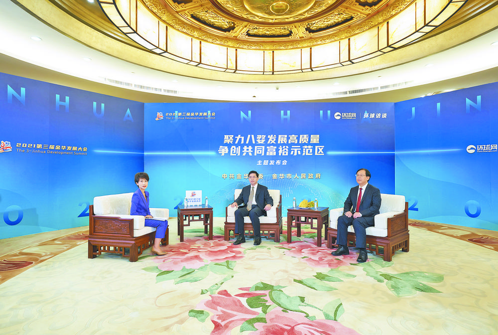 暢談加快打造共同富裕先行示范浙中板塊 面對共同富裕新使命新任務(wù),金華市已有哪些實(shí)踐基礎(chǔ),又將如何謀篇布局?圍繞“聚力八婺發(fā)展高質(zhì)量 爭創(chuàng)共同富裕示范區(qū)”主題,第三屆金華發(fā)展大會將有哪些新安排,又會碰撞出怎樣的火花? 在金華市打造共同富裕先行示范浙中板塊開局之年、2021第三屆金華發(fā)展大會召開之前,環(huán)球網(wǎng)特邀市委書記陳龍,市委副書記、市長邢志宏做客《環(huán)球訪談》新聞直播間,暢談金華市推進(jìn)實(shí)現(xiàn)共同富裕的思路舉措、金華發(fā)展大會籌備情況。 昨天,《環(huán)球訪談》欄目刊發(fā)了《肩負(fù)使命擔(dān)當(dāng),金華加快打造高質(zhì)量發(fā)展推進(jìn)共同富裕先行示范浙中板塊》文章,推出市領(lǐng)導(dǎo)訪談實(shí)錄。 訪談中,陳龍介紹了近年來金華市推進(jìn)高質(zhì)量發(fā)展取得的成績,共同富裕先行示范浙中板塊“八個(gè)更加、八個(gè)高”目標(biāo),當(dāng)前及今后一個(gè)時(shí)期需要重點(diǎn)打好的“八套組合拳”,勾勒出助力全省建設(shè)共同富裕示范區(qū)的金華圖景。邢志宏介紹了前兩屆金華發(fā)展大會在推動金華籍人才和資本、項(xiàng)目回歸方面收到的成效,第三屆金華發(fā)展大會的新亮點(diǎn)、新特色,并分享近年來金華市利用自身特點(diǎn)優(yōu)勢進(jìn)行招才引智、招大引強(qiáng)的經(jīng)驗(yàn)做法。 |