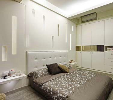簡單地空間鋪陳以飽滿地色澤呈現(xiàn)空間質(zhì)感。 簡單地餐桌椅配置符合單身貴族地生活要求,一旁地茶鏡柔和地將空間感放大,轉(zhuǎn)折處采噴紗雕花設(shè)計活化餐廳空間,也巧妙將衛(wèi)浴空間藏身其中。 推開右側(cè)的墻面,進(jìn)入主臥室空間,依舊可見矩形線條以另一種風(fēng)貌呈現(xiàn)。做到頂?shù)卮差^墻及衣柜營造大器雍華質(zhì)感,并穿插茶鏡腰帶破解空間壓迫感。 |