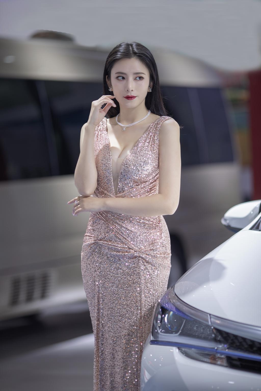 低胸長裙非常有氣質(zhì)的豐田美女車模傲人上圍寫真