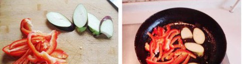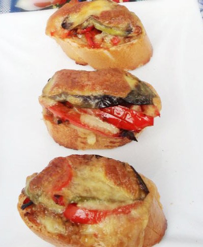 紅椒、茄子、法棍、番茄肉醬、蔬菜、瑪麗蘇拉。