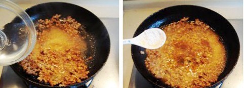 1、番茄肉醬的做法,準備肉末,入鍋中炒散后加入料酒炒到肉色發(fā)白時,加入番茄醬(記住是番茄醬,不是番茄沙司),再加入黑胡椒粉調(diào)味。