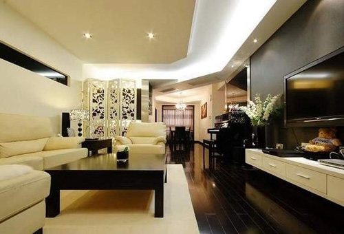 其中的一個客廳,很寬闊,從這邊廂望向那邊廂,簡直有點遙遙而望的感覺,整體居家走溫馨愜意路線,所以使用的色調(diào)都基本屬于暖色調(diào),偶有黑色作為襯托。