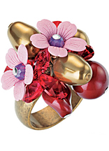 花朵風格可以變幻出無窮的搭配方法,不同材質的花朵可以打造出不同的感覺。鉆石與鉑金、水晶與彩寶,甚至金屬光芒十足的純金屬花朵都是繽紛上演在主流的配飾秀場;ǘ滹L格的珠寶腕表也可以當作配飾出現在婚紗Look上。這季的花朵都非常立體,已經成為實際生動的永不調謝的昂貴花朵!