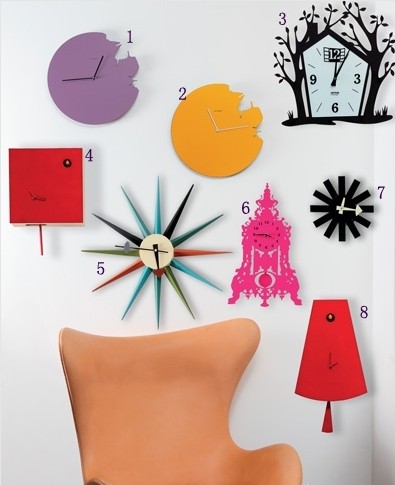 1、2:殘缺的邊緣其實是設計師別出心裁的設計,是兩只蝴蝶飛走的形狀。Crossover跨界 3.小房子和大樹,如簡筆畫一般,營造出濃濃的溫情。齊物誠品 4.方方正正的造型,簡約到極致,大紅色也具有足夠的視覺沖擊力。Crossover跨界 5.一根根伸出的尖角被涂上了不同的顏色,仿佛是童話里才會出現(xiàn)的裝飾品,充滿了夢幻和童趣的色彩。齊物誠品 6.小鐘塔造型配上精致的鏤空鐵藝,鮮艷的粉色瞬間就激活了墻壁的熱情。齊物誠品 7.它身材小巧,卻足夠另類,黑色的12根鐵藝造型取代了時間刻度。齊物誠品 8.下方的鐘擺提醒你時間的匆匆,每到整點,圓洞中的小黃鳥就會探出頭來鳴叫。Crossover跨界
